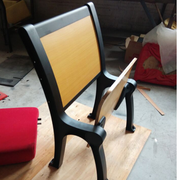 2、椅背:采用多層優質旋切木皮熱壓成型,板面壓防火板,背板上下定位封邊金屬框架固定,表面作防氧化處理后高溫噴涂處理。